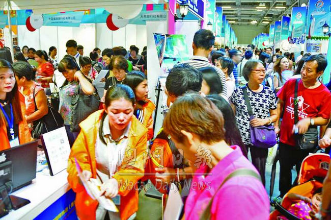 旅行社推優(yōu)惠,吸引不少居民到場,場面虛冚