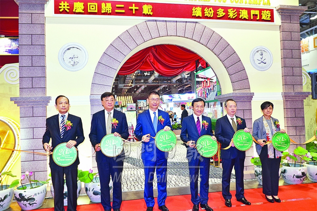 為慶祝澳門特區(qū)成立二十周年,旅遊局特意於旅博會設(shè)立《共慶回歸二十載,繽紛多彩澳門遊》特別展覽,以七個篇章,全方位及多角度展示澳門在“一國兩制”成功實踐下持續(xù)豐富的綜合旅遊資源和產(chǎn)品,以及全力構(gòu)建“世界旅遊休閒中心”的成果。同時舉辦抽獎活動,向旅客宣傳澳門特區(qū)成立二十周年。
