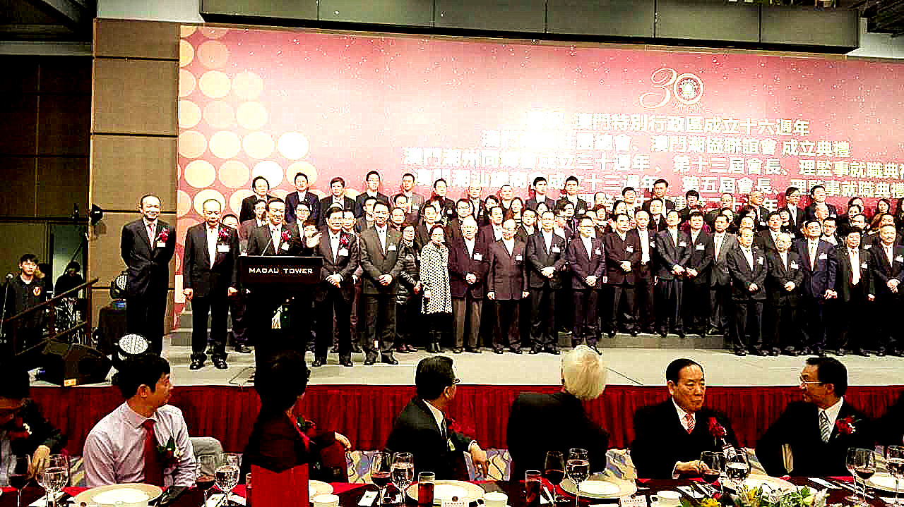 為慶祝澳門特別行政區(qū)成立十六周年,澳門潮州同鄉(xiāng)會成立三十周年、第十三屆會長和理監(jiān)事就職典禮,澳門潮汕總商會成立十三周年、第五屆會長和理監(jiān)事就職典禮,以及澳門潮屬社團總會、潮協(xié)聯(lián)誼會成立和培華中學建校周年聯(lián)歡宴會於12月8日假旅遊塔宴會廳舉行。澳門萬國控股集團主席劉雅煌、執(zhí)行董事劉兆爵分別當選澳門潮汕總商會會長及副理事長。