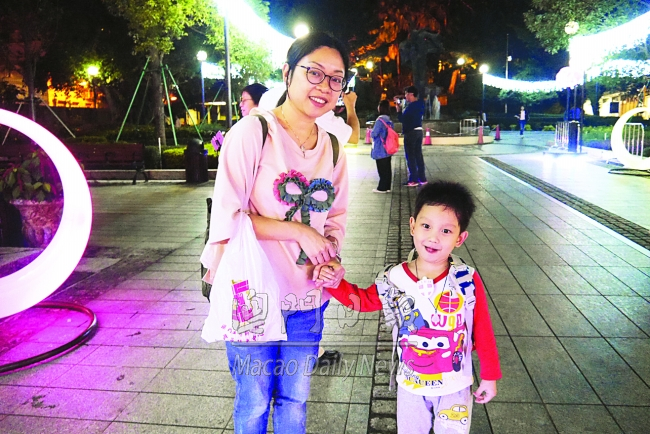居民鄭女士帶同小孩前來(lái)感受氣氛,但感覺(jué)部分地點(diǎn)的整體觀感稍遜色,周邊環(huán)境相對(duì)較平淡,期望當(dāng)局下年續(xù)辦時(shí),可把特別的燈飾或光影效果放在平日較冷清的地區(qū),吸引居民、旅客專(zhuān)程前往。