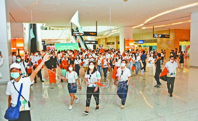 “心出發(fā) · 澳遊橫琴”首發(fā)團(tuán)一行近百人昨日下午三時(shí)在橫琴新口岸啟用後率先通關(guān)踏入橫琴,以半天橫琴遊形式拉開(kāi)琴澳聯(lián)動(dòng)協(xié)同發(fā)展、打造琴澳旅遊品牌的序幕。