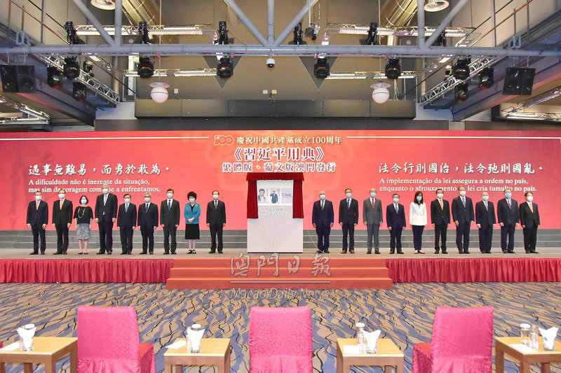 三會新一屆成員由劉雅煌領(lǐng)誓,在立法會主席高開賢監(jiān)誓下宣誓就職。同場進行《習近平用典》繁體版、葡文版澳門發(fā)行儀式,以及“百年航程·赤子僑心”——慶祝中國共產(chǎn)黨成立100周年主題展澳門巡展開幕儀式。