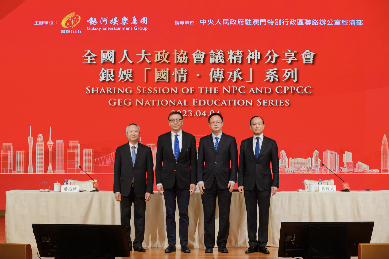【澳門日報消息】銀河娛樂集團(tuán)今日主辦全國人大政協(xié)會議精神分享會——銀娛“國情?傳承”系列假銀河國際會議中心之銀河演講廳舉行。是次活動邀請到中聯(lián)辦經(jīng)濟部副處長楊毅出席指導(dǎo),並邀請到全國人大代表蕭志偉、全國政協(xié)常委劉雅煌,全國政協(xié)委員、銀娛副主席呂耀東就今屆“兩會”,以線上線下形式向合共約八百名銀娛管理層成員分享真知灼見以及個人體會。