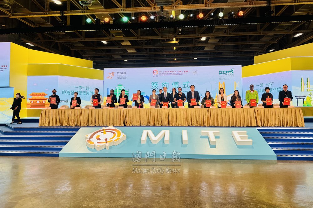 見證下,逾80個文旅相關(guān)機構(gòu)和社團參與,共分為7個組別,簽訂逾30份涵蓋旅遊、大健康、航空、研學、婚慶等合作項目,其中17個“一帶一路”國家現(xiàn)場展商及買家同共簽署《旅博會“一帶一路”旅遊發(fā)展聯(lián)盟澳門倡議》。