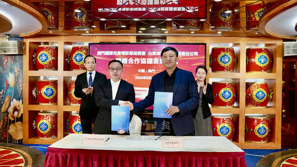 活動期間,山東演藝集團分別與澳門萬國控股集團、澳門國際兒童電影節(jié)組委會、澳門山東文化交流協(xié)會簽署戰(zhàn)略合作協(xié)議,王磊和劉雅煌見證簽約。