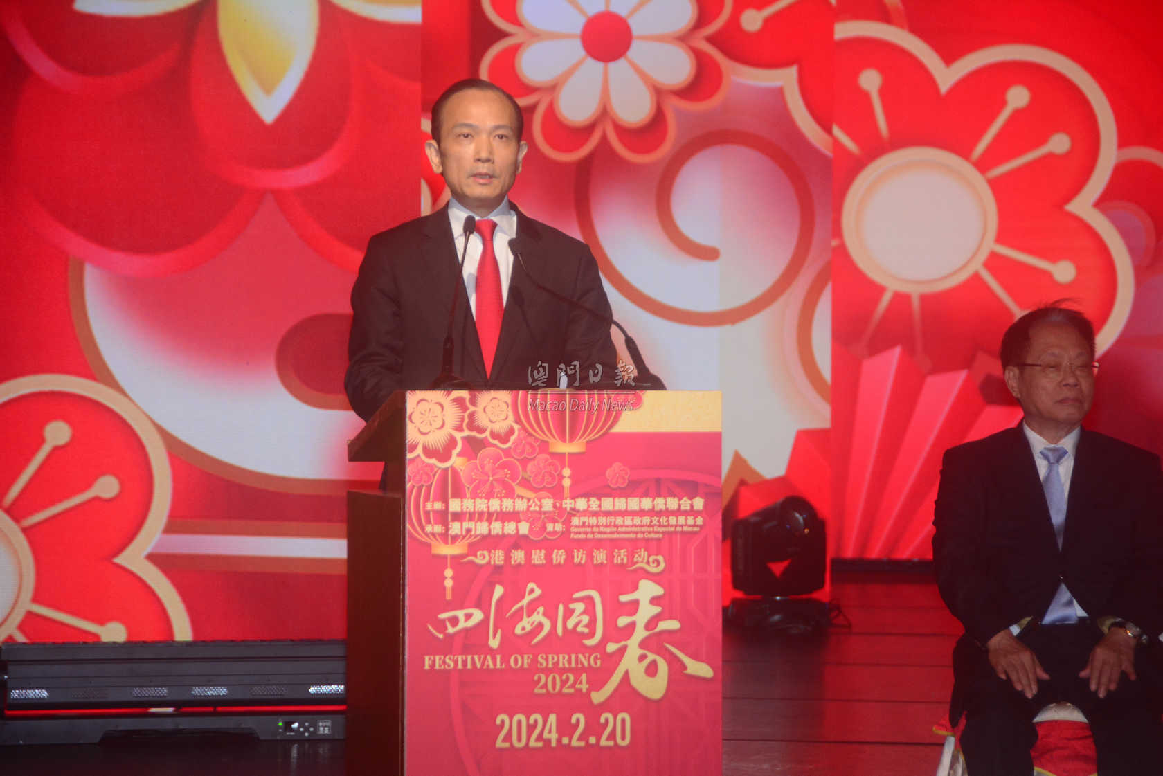 四海同春藝術(shù)團(tuán)團(tuán)長、中國僑聯(lián)聯(lián)誼聯(lián)絡(luò)部副部長、一級巡視員朱柳致詞稱,“四海同春”藝術(shù)團(tuán)慰僑訪演已走過十五個年頭,每年春節(jié)都會組派國家級高水準(zhǔn)藝術(shù)團(tuán),分赴全球五大洲及港澳地區(qū)開展慰僑演出,和港澳同胞、海外僑胞一起過年,也帶來祖國和家鄉(xiāng)關(guān)愛、牽掛和思念,同時(shí)讓大眾感受中華文化和鄉(xiāng)情。新一年,中國僑聯(lián)與澳門僑界將繼續(xù)增強(qiáng)澳門僑界的家國情懷和傳承愛國愛澳精神,堅(jiān)定擁護(hù)“一國兩制”,堅(jiān)決支持特區(qū)政府依法施政,積極發(fā)揮澳門僑界融通中外優(yōu)勢,對外講好中國故事、講好澳門故事,助力澳門融入國家發(fā)展大局。