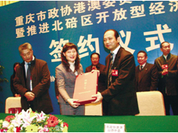 協(xié)議簽訂後,雙方將建立起合作關係,進一步推動北碚特色產(chǎn)業(yè)園區(qū)建設、加強招商引資和外經(jīng)外貿(mào)工作,加快開放型經(jīng)濟發(fā)展,探索一條上下聯(lián)動、相互支持的新路子,共同推進我區(qū)開放型經(jīng)濟跨越式發(fā)展。重慶市政協(xié)副主席王孝詢及相關部門領導,北碚區(qū)領導黃波、雷政富、彭燁等以及市政協(xié)港澳臺僑外委組織的30餘名市政協(xié)港澳委員也出席了簽約儀式。